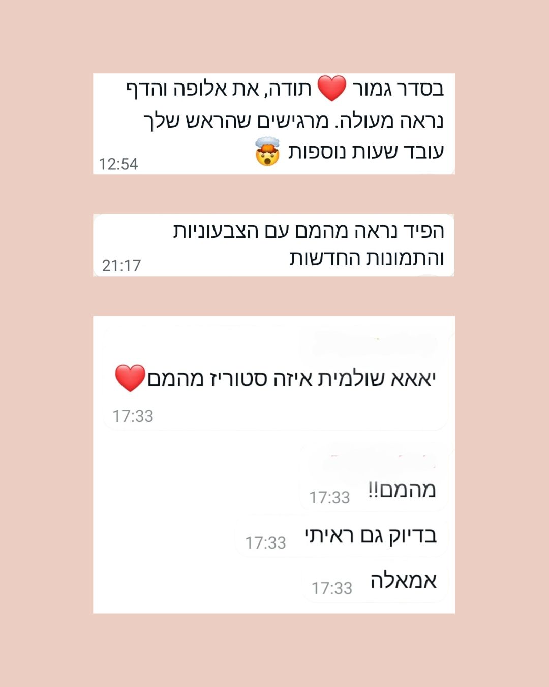 + סטוריז 3 פעמים בשבוע (בין 2-7 סטוריז בכל פעם)